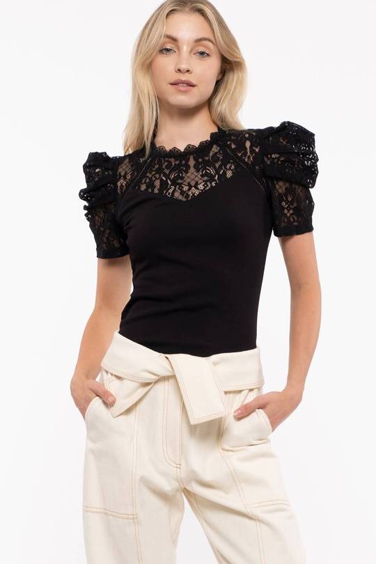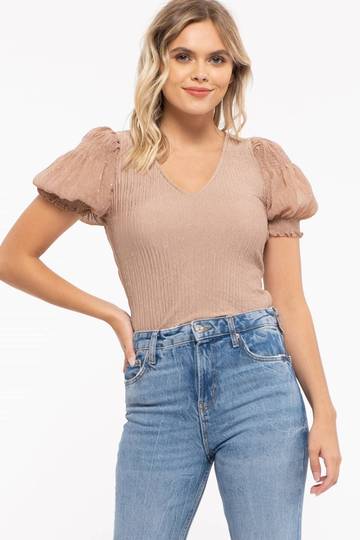 Renee C Made in USA Faux Leather Top with Rib Banded Bottom