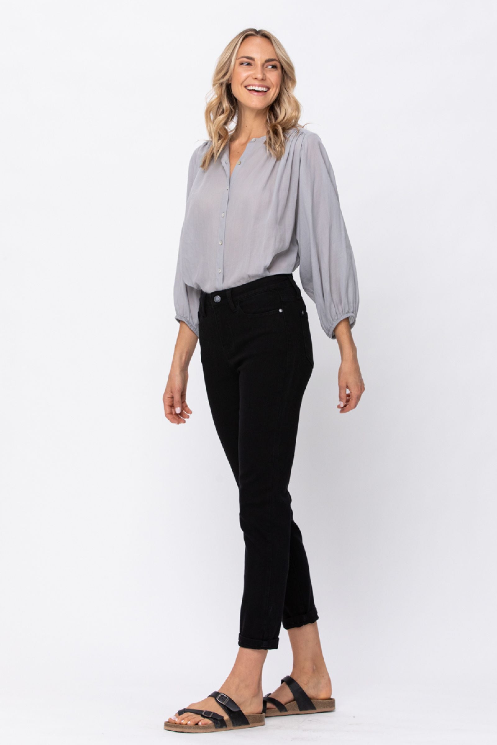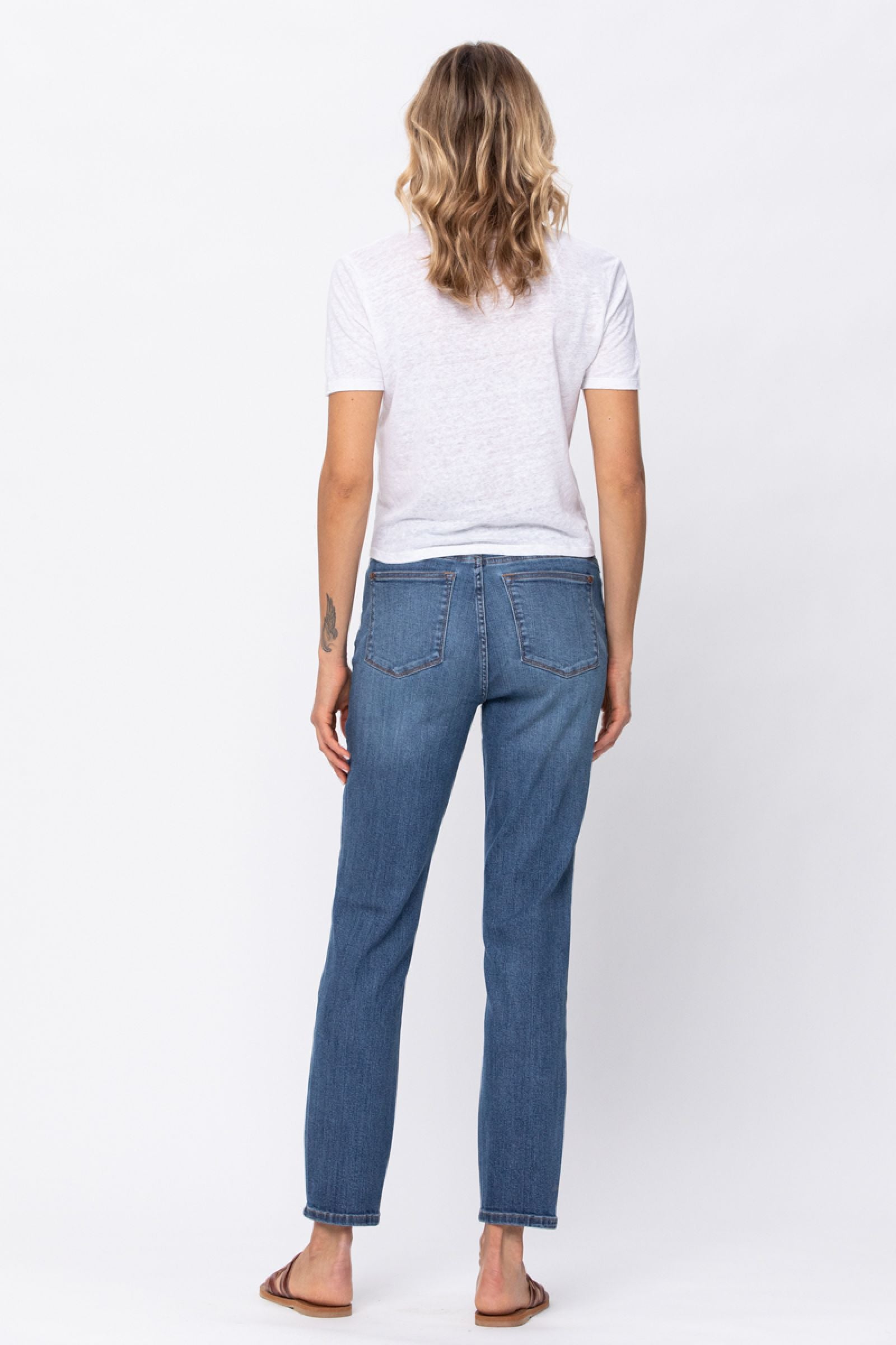 Judy Blue Mid-Rise Buffalo Plaid Patch Skinny Jeans