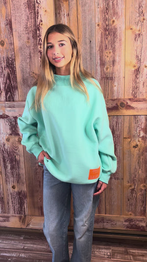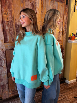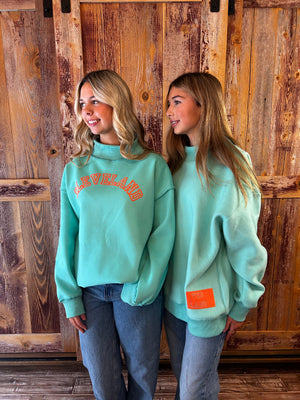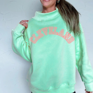 Spring's finally arriving in Cleveland, and these reversible mock necks are your new wardrobe essential. Rock two distinct designs in one cozy piece—flip between bold graphics depending on your mood or outfit. Choose Lemon Yellow with hot pink lettering or Light Teal with coral orange accents, both featuring that signature kentlyn's softness you'll want to live in. Oversized fit in S/M or L/XL. Why settle for one sweatshirt when you can have two?