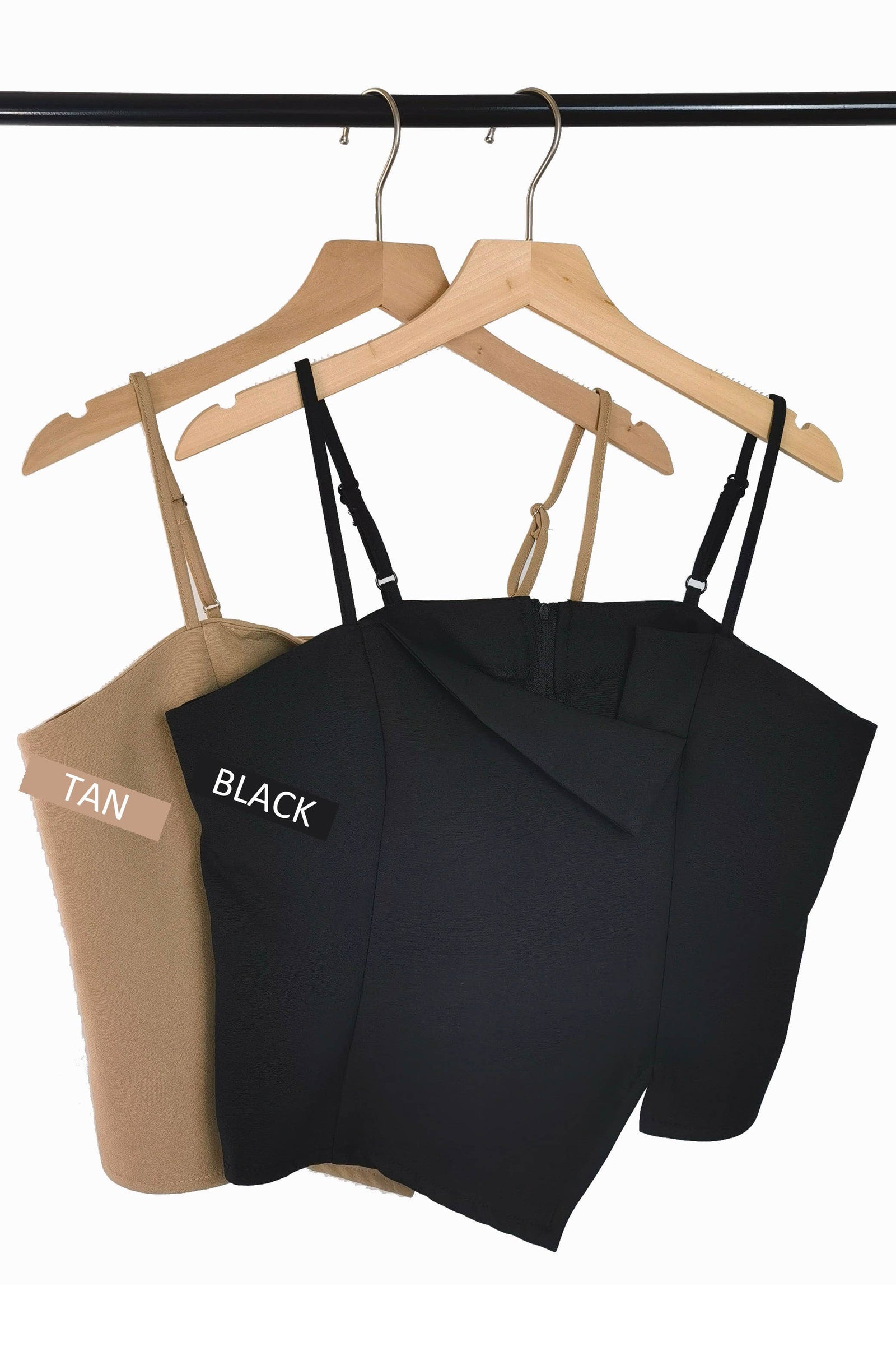 ESLEY Sleeveless Cropped Irregular Neck Woven Tank
