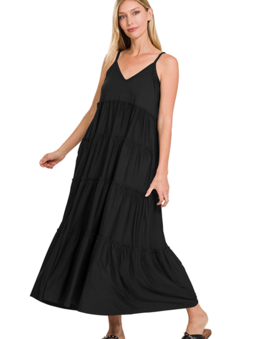 Vneck cami maxi tiered dress with pockets