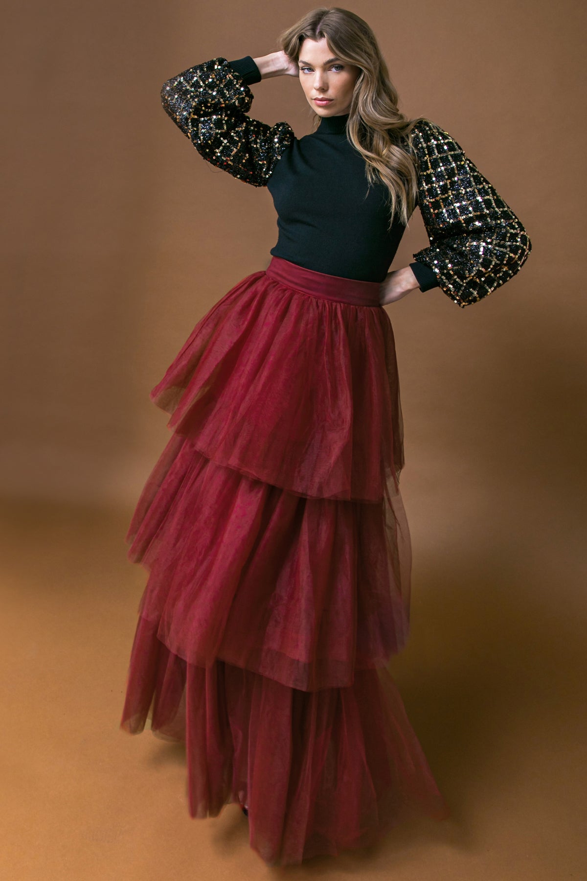 Flying Tomato Merlot Tiered Tulle Skirt