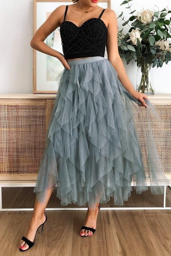 A-line tulle ruffle skirt