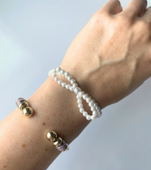 Add a touch of charm with this playful bracelet featuring faux pearl beads strung on a stretchy band. Designed to fit most wrists comfortably, it showcases a single strand of pearls accented with a cute bow detail—perfect for a trendy, feminine vibe that's simply adorable.